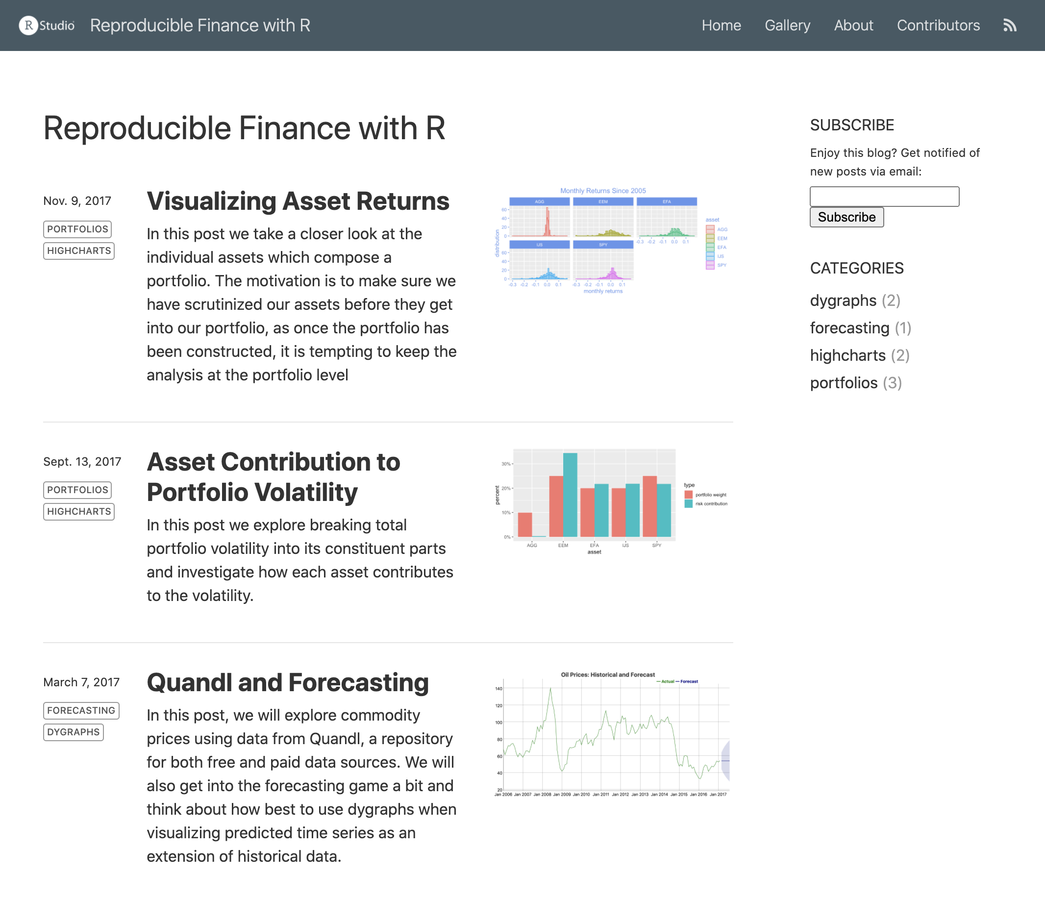 - dygraphsAs a result of including categories, the listing page now looks like this: