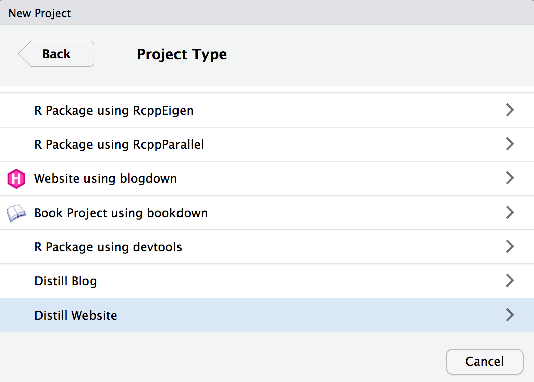 If you are using RStudio, the easist way to get started is to use the Distill Website option in the RStudio New Project dialog:
