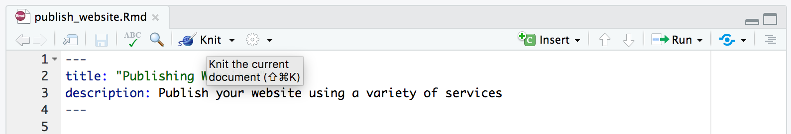 All of the Rmd and md files in the root website directory will be rendered into HTML. Note however that markdown files beginning with “_” are not rendered (this is a convention to designate files that are included by top level documents).
